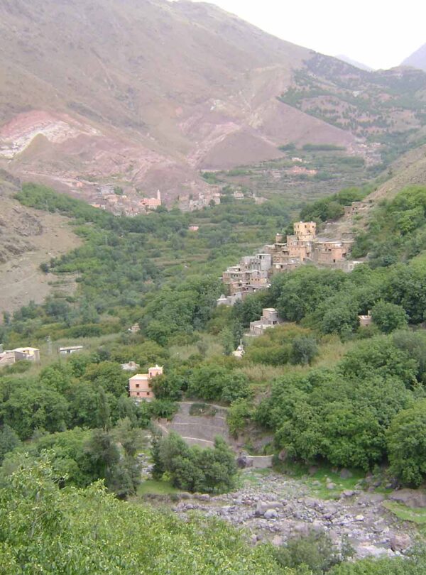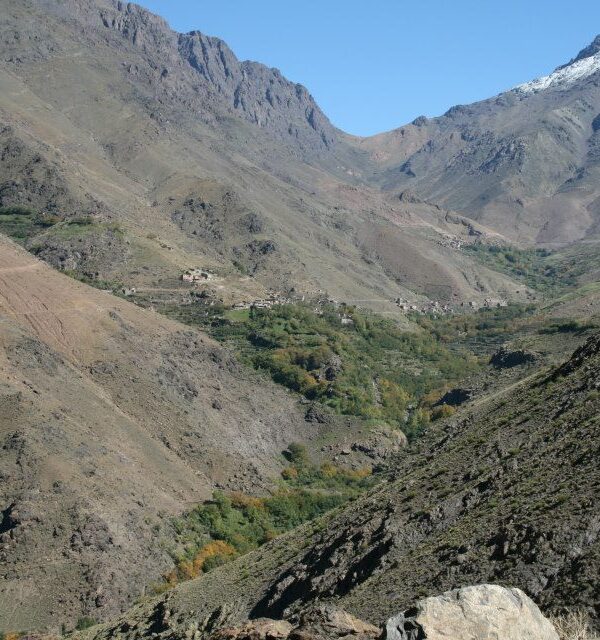 Ascend along a piste track towards Angour before running parallel to this most impressive mountain, to rise at a steady gradient towards the first and highest pass you will cross on this holiday, the Tizi ‘n Addi. Enjoy views of the Atlas Mountains and across the valley below. Continue up on a Berber trail to Tacheddirt, the highest permanently occupied Berber village in the whole of North Africa.