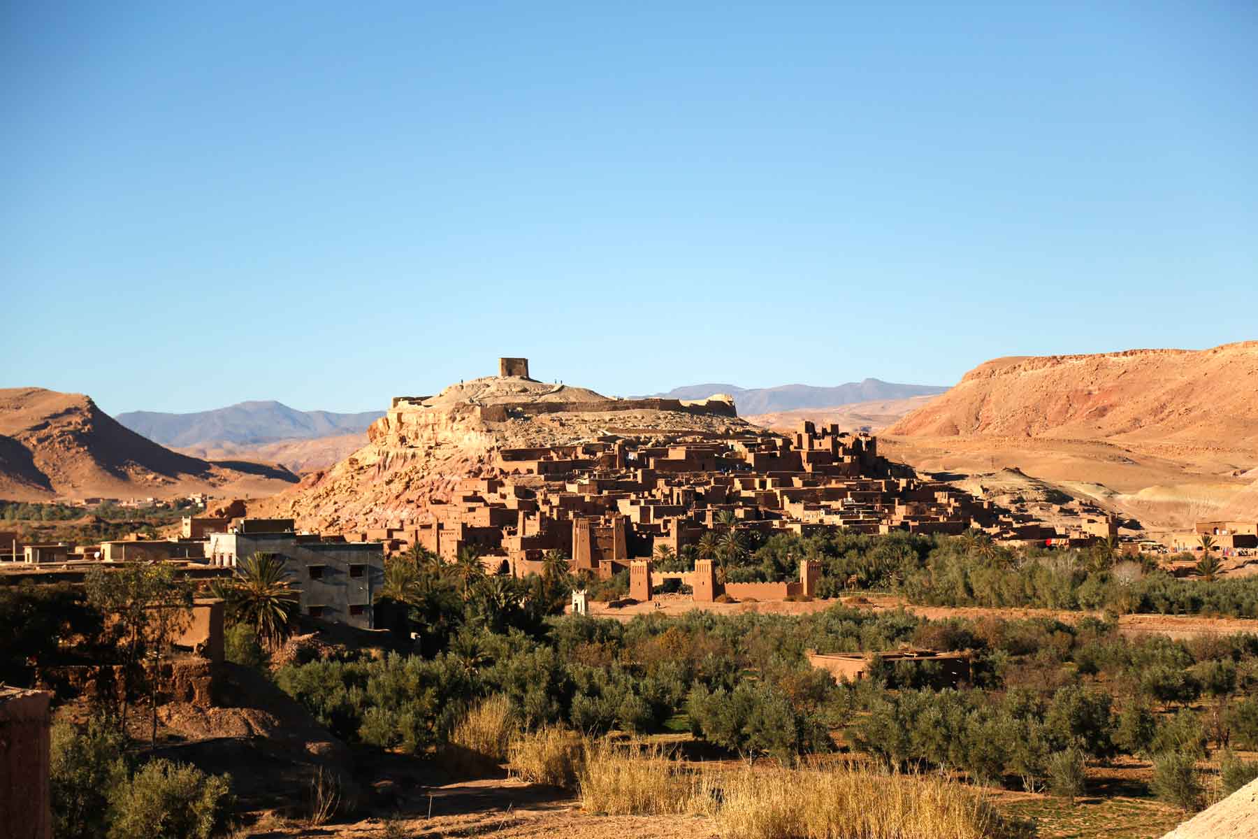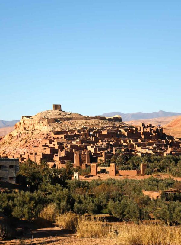 After breakfast we will leave Imlil. First we cross the spectacular Tizi n’Tichka Pass of the High Atlas mountains. You will pass through many Berber villages, and once in the desert, riverside oasis and barren hillsides are clustered with Kasbahs. After lunch we drive further to Valley of the Roses, with beautiful views of the Dades valley, valley of a thousand kasbahs. In the way to Dades you will be able to visit Kasbah Ait Ben Haddou. Overnight in Dades.