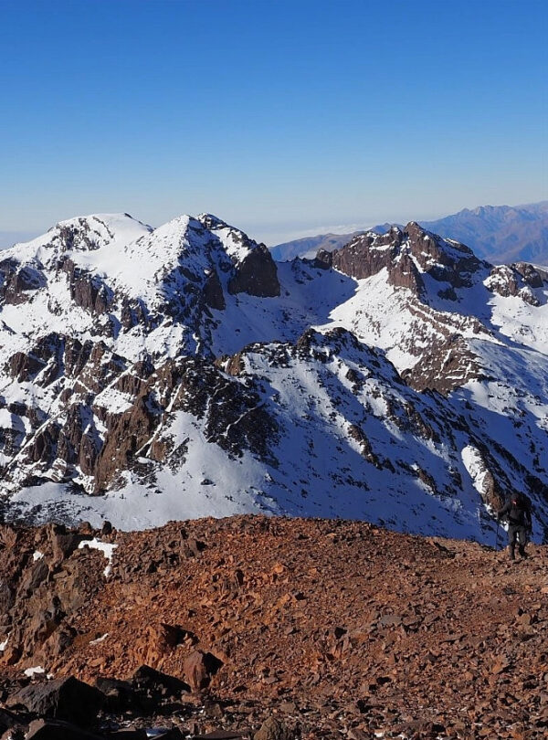 North Africa’s highest mountain is the centerpiece of that incomparable view southwards from Marrakech, often shocking with its unexpected silvering of snow, but it also holds out an easier summer ascent.