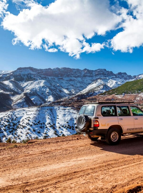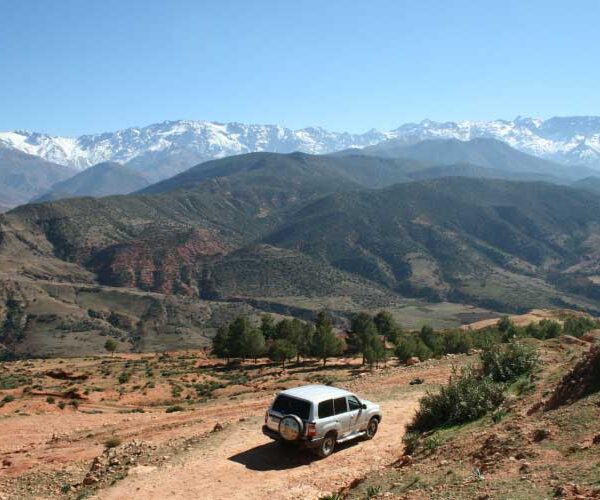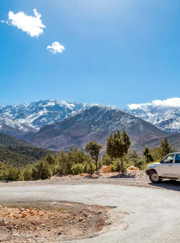 From the lake we will drive with the 4×4 via the Kik Plateau to the little mountain village called Imlil. We will follow a little-used mountain road to Imlil where you will will have lunch at a local guesthouse. From here you will have a beautiful view of the Mizane Valley. After lunch you will meet a local guide for a 1,5 hour walk in the the area. After the walk you will transfer back to Marrakech.